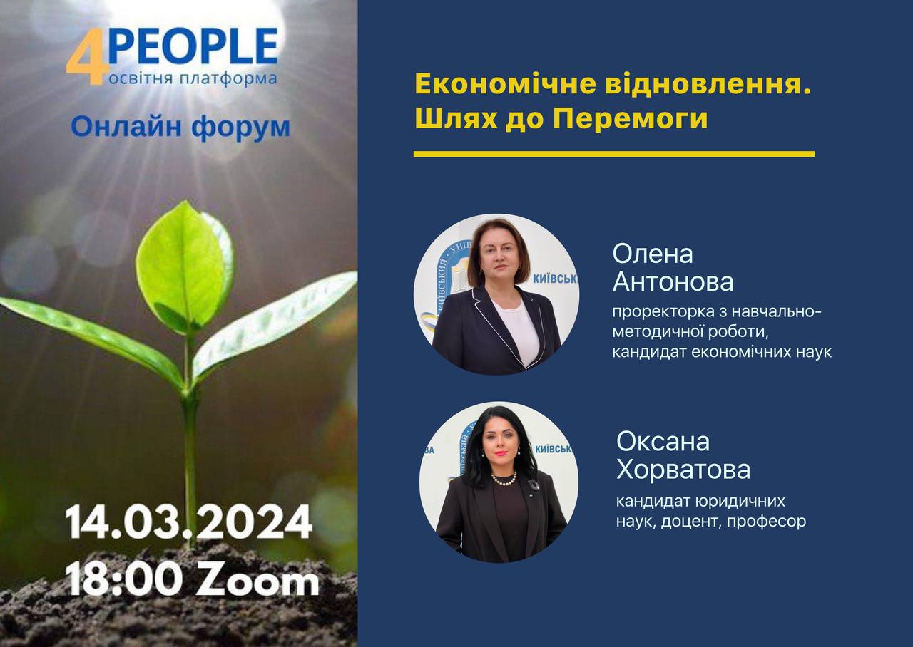 Днями в Києві відбувся Всеукраїнський Форум «ЕКОНОМІЧНЕ ВІДНОВЛЕННЯ. ШЛЯХ ДО ПЕРЕМОГИ», в якому прийняли участь науково-педагогічні представники Київського університету права НАН України. Метою проведення Форуму стало привернення уваги до проблем економічної відбудови України, підвищення рівня фінансової грамотності населення. Організаторами Форуму стали освітня платформа «4PEOPLE», а учасниками та доповідачами представники органів державної влади та управління, бізнесмени, фахівці в галузі вищої освіти, експерти фінансового ринку.