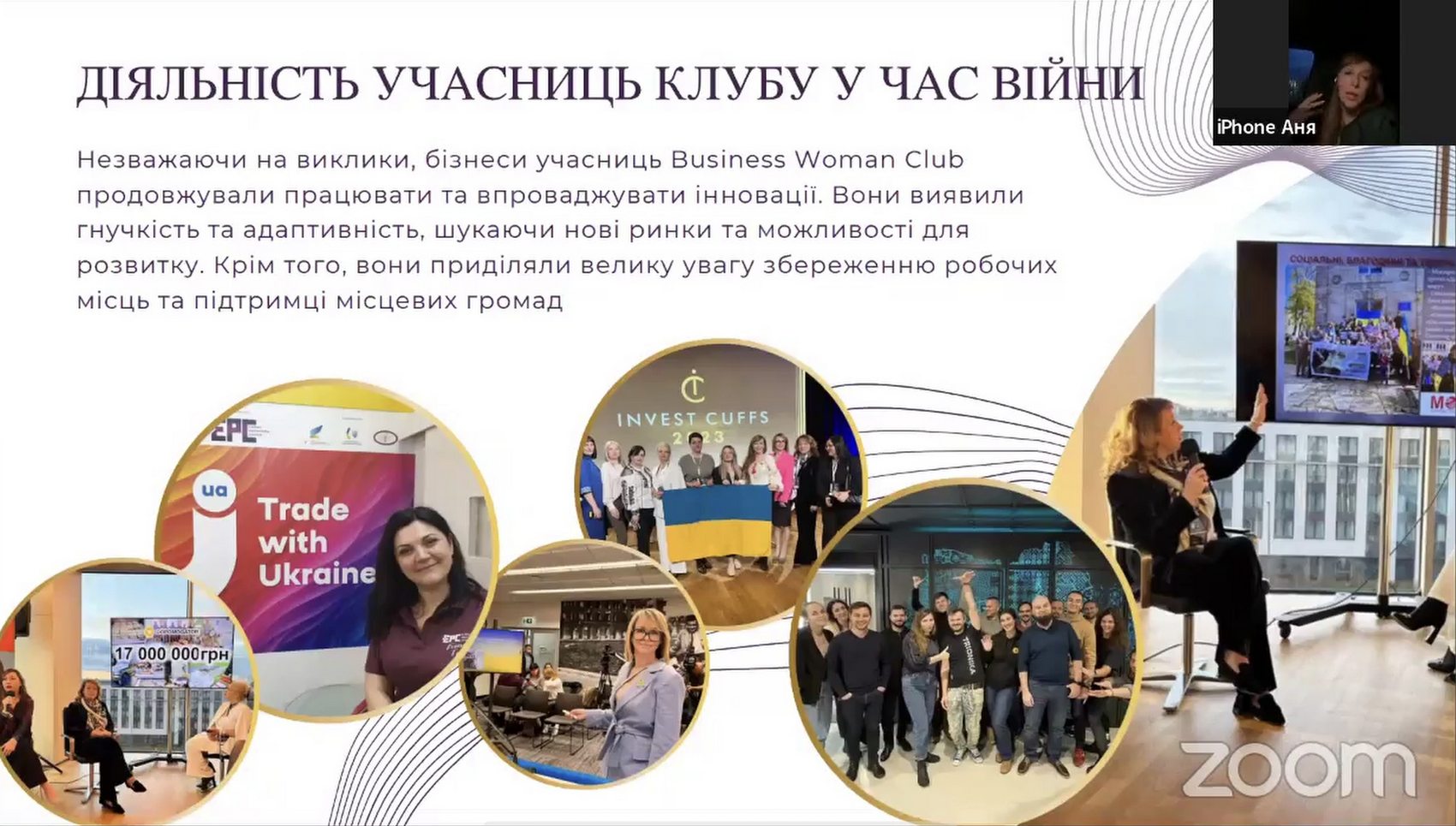 Присутні обговорили питання розуміння дефініціі перемога та позиціонування України на міжнародній арені, посилення ролі жіночого підприємництва в післявоєнний період, зростання особистих доходів жінок України; основні економічні реформи на шляху до Перемоги; передумови та ключові події відбудови, роль і значення територіальних громад у повоєнному відновленні економічної системи України; вплив підприємницької освіти у повоєнній Україні, модернізацію роботи освітніх закладів в умовах невизначеності; цифрові рішення в громадах для сталого розвитку, інноваційні фінансові технології.