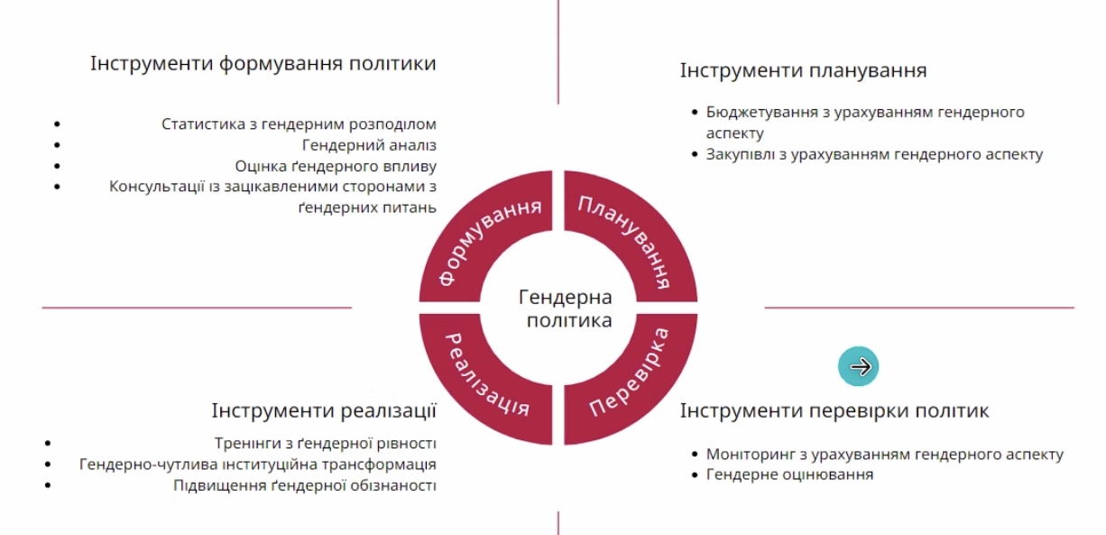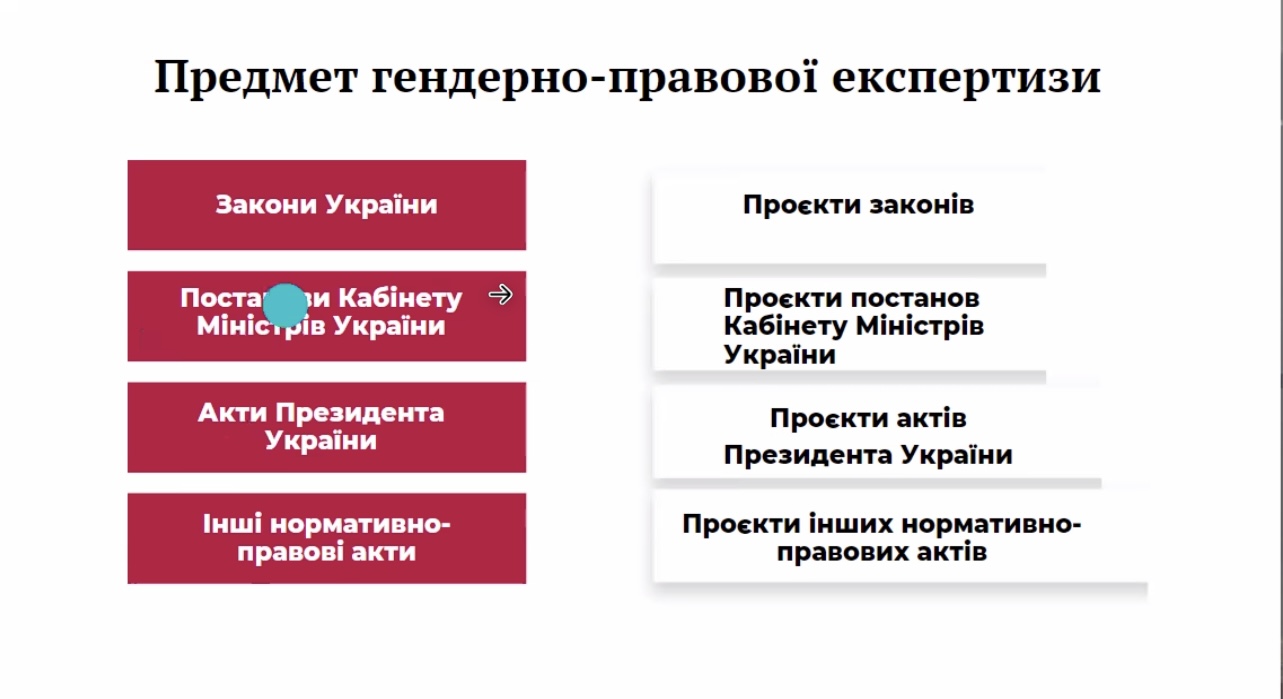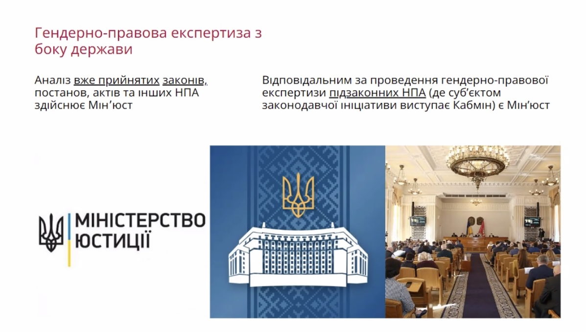 Окрему увагу присутніх було зосереджено на аналізі Закону України «Про забезпечення рівних прав і можливостей жінок і чоловіків», який визначає, що гендерна рівність це рівний правовий статус жінок і чоловіків та рівні можливості для його реалізації; рівні можливості жінок і чоловіків – це рівні умови для реалізації рівних прав жінок і чоловіків. Принцип гендерної рівності закріплений у Конституції України, що виражається у рівності прав жінок і чоловіків щодо надання жінкам рівних з чоловіками можливостей у громадсько-політичній та культурній діяльності, у здобутті освіти та професійній підготовці.