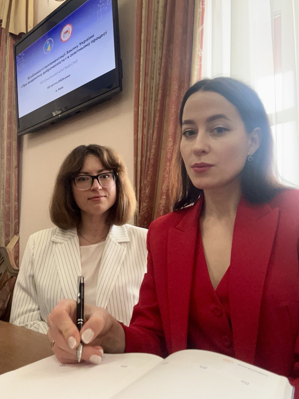 Завідувачка Кафедри загальнотеоретичних правових і соціально-гуманітарних дисциплін Олена Романова та доцент кафедри, уповноважена з перевірки на академічний плагіат, Агнесса Пашинська взяли участь у регіональному круглому столі «Особливості імплементації Закону України “Про академічну доброчесність” в освітньому процесі», який відбувся 2 квітня 2026 року на базі Київського національного університету імені Тараса Шевченка.