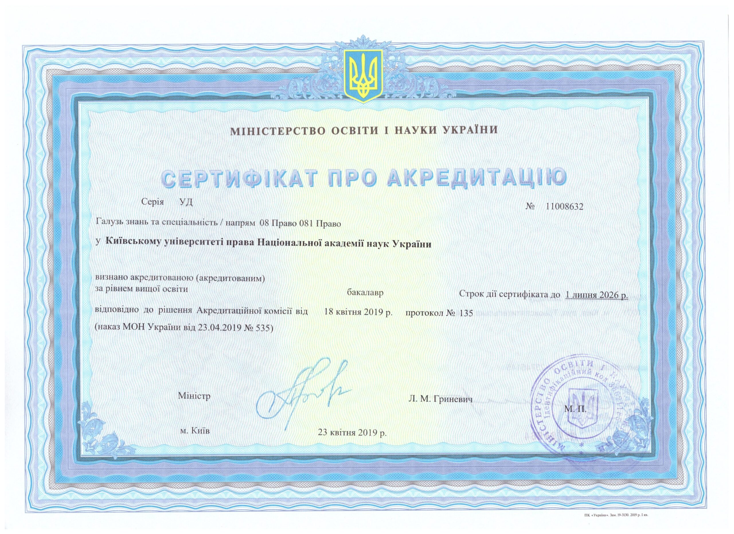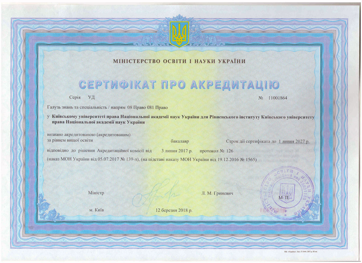 Київський університет права НАН України готує висококваліфікованих юристів для державних і правоохоронних органів, сфери ринкової економіки та наукової сфери. Четвертий рівень акредитації надає можливість отримати диплом бакалавра та магістра державного зразка.