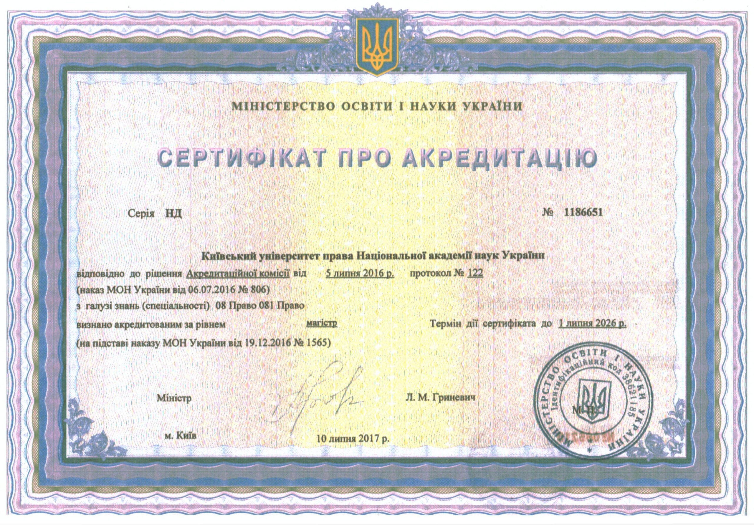 На сьогодні Київським університетом права НАН України подано до МОН України всі належні документи для вирішення даного питання.