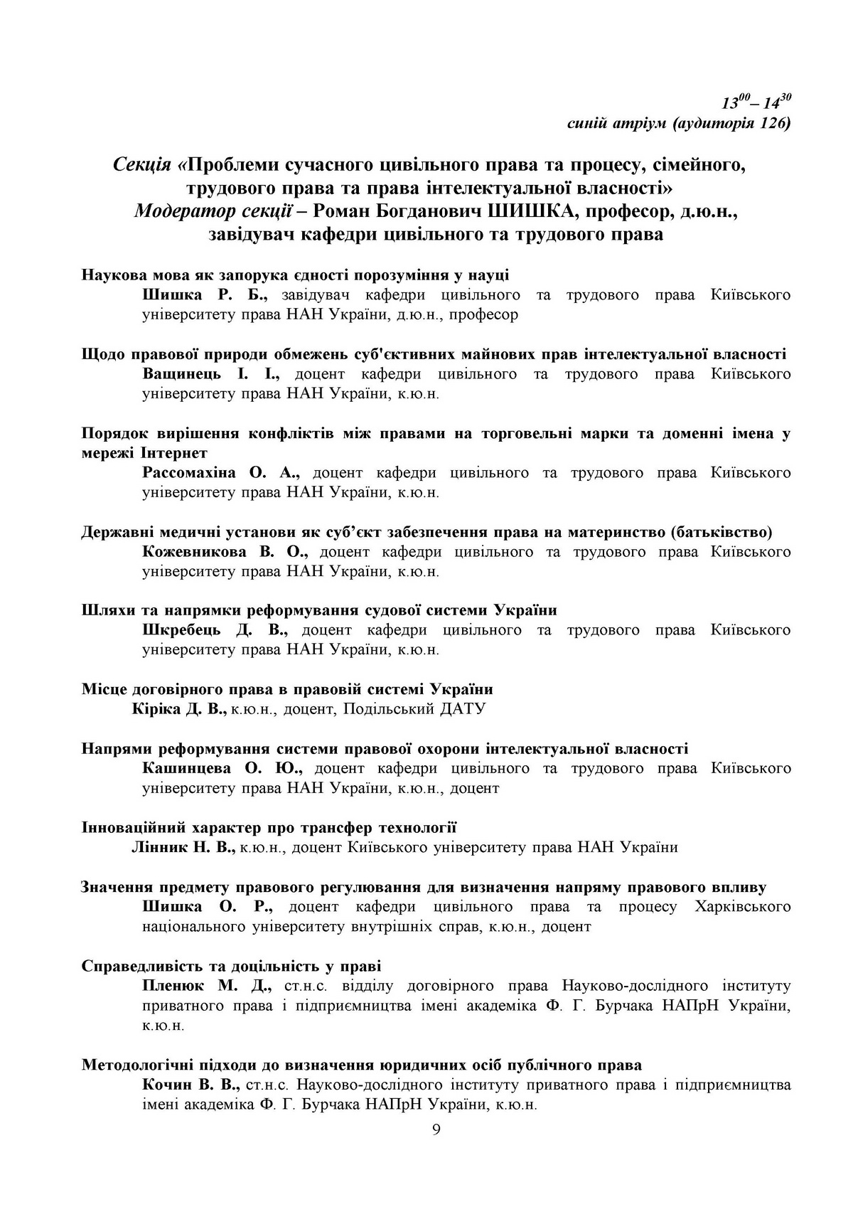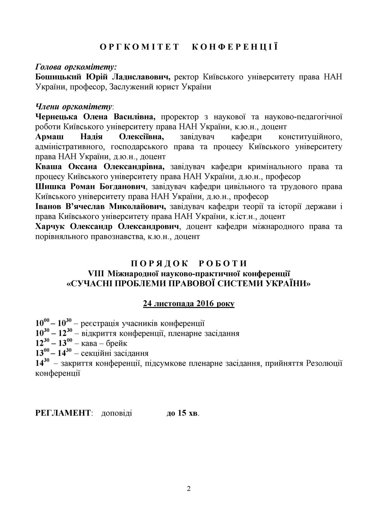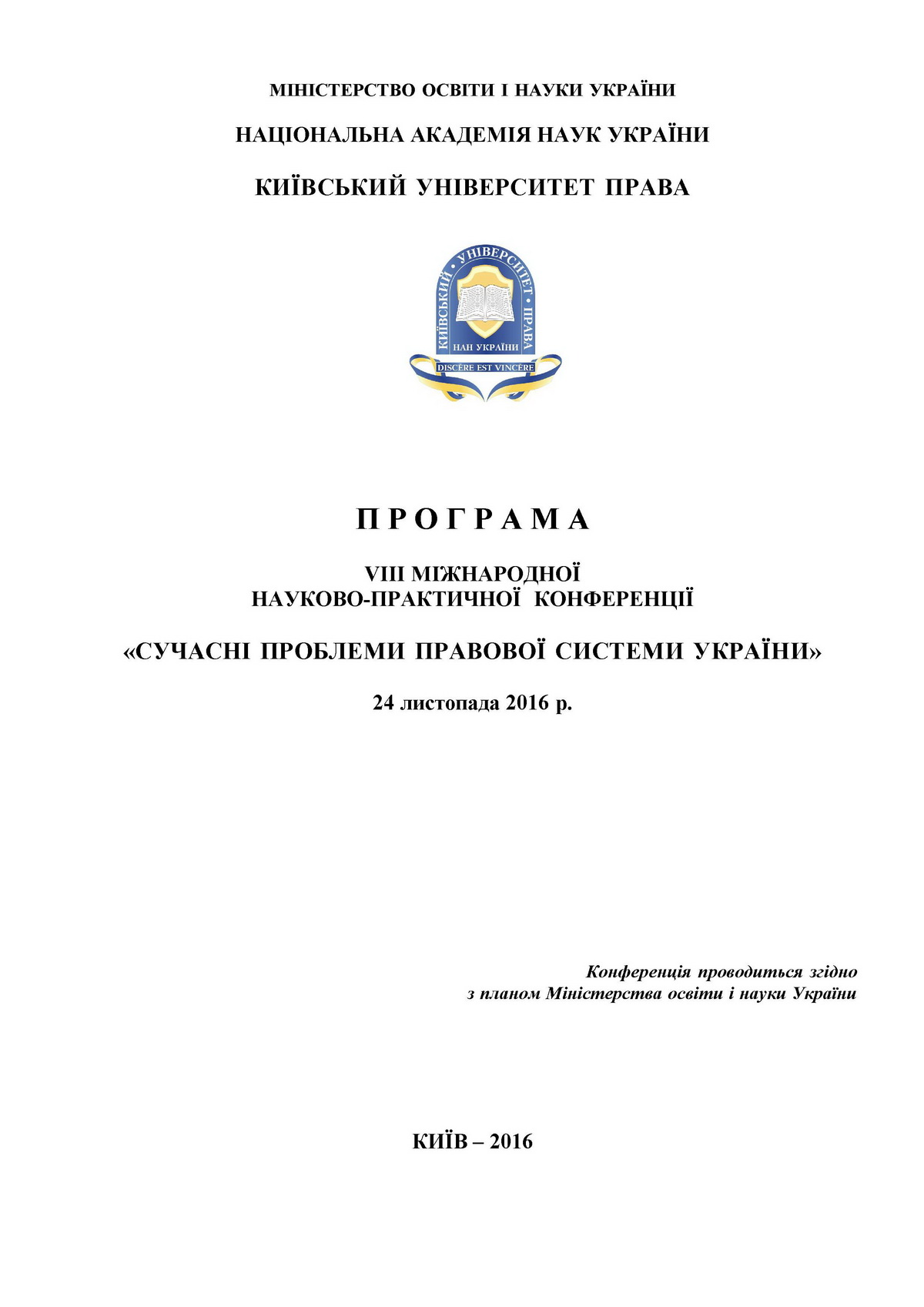 Програма VІІІ Міжнародної науково-практичної конференції «СУЧАСНІ ПРОБЛЕМИ ПРАВОВОЇ СИСТЕМИ УКРАЇНИ»