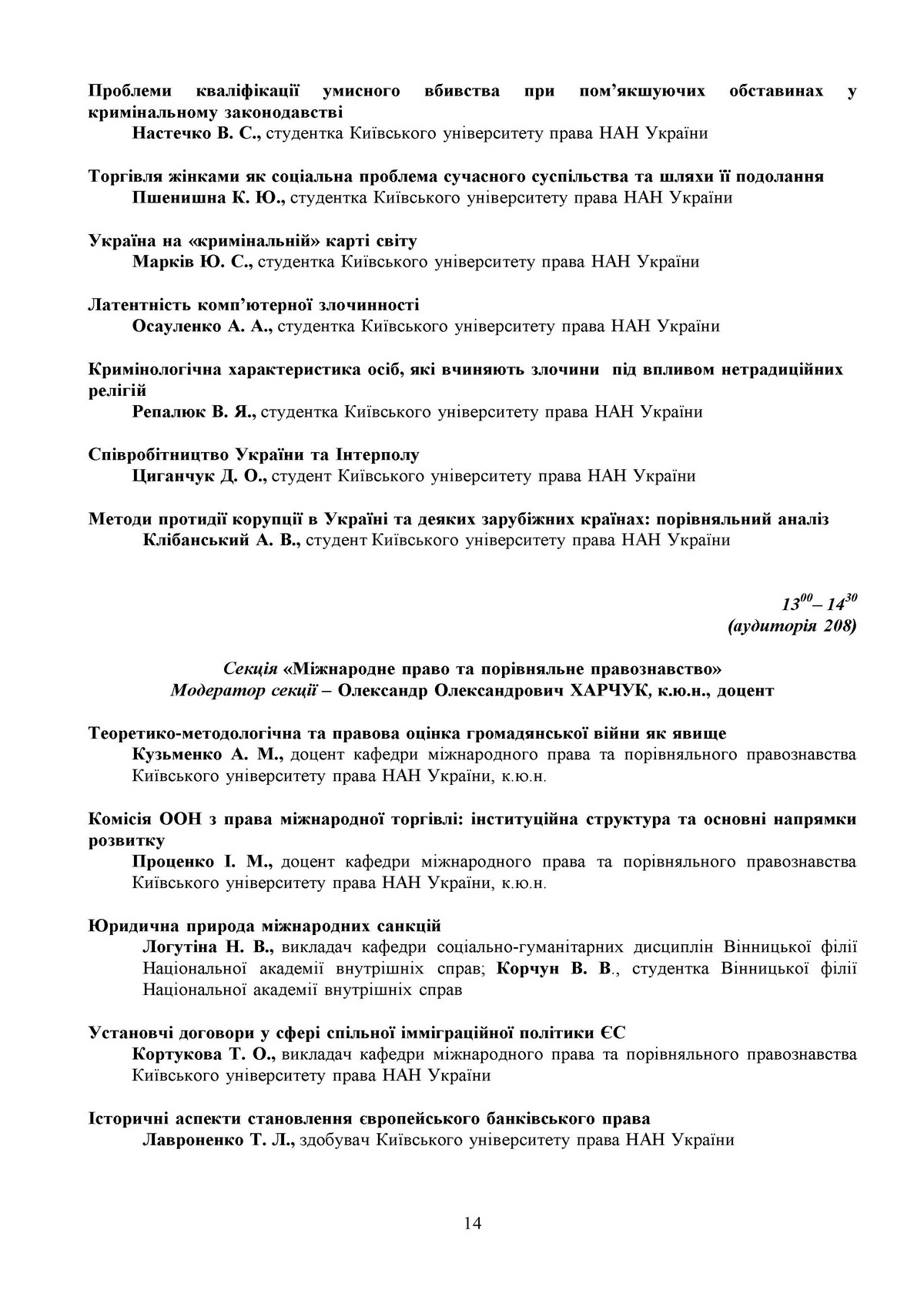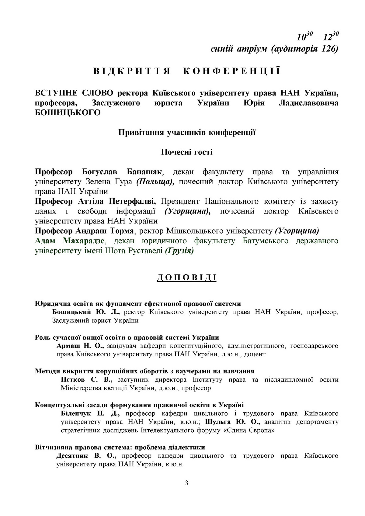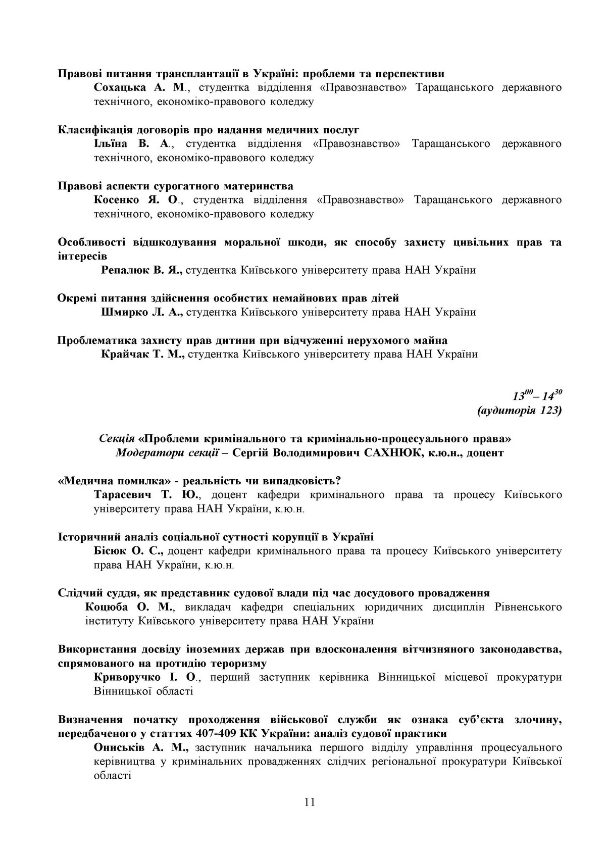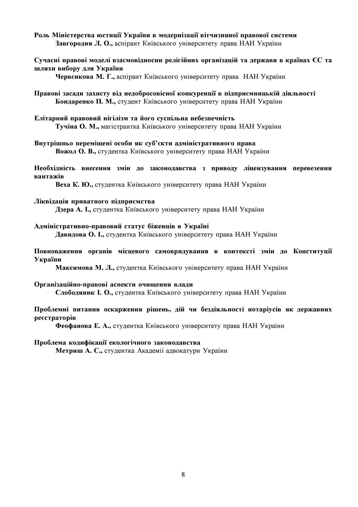 Програма VІІІ Міжнародної науково-практичної конференції «СУЧАСНІ ПРОБЛЕМИ ПРАВОВОЇ СИСТЕМИ УКРАЇНИ»