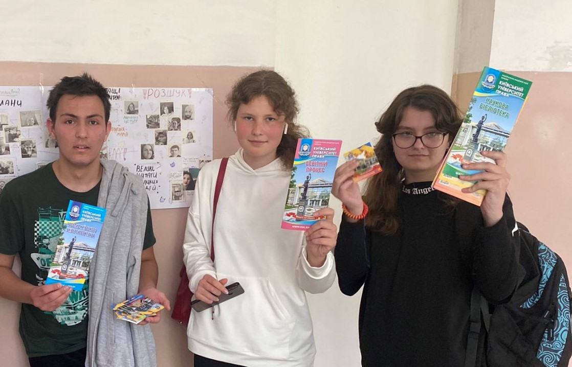 На пам’ять про зустріч, школярам і працівниками школи було роздано буклети з інформацією про Київський університет права НАН України, його структурні підрозділи, календарики та інший рекламно-інформаційний матеріал.