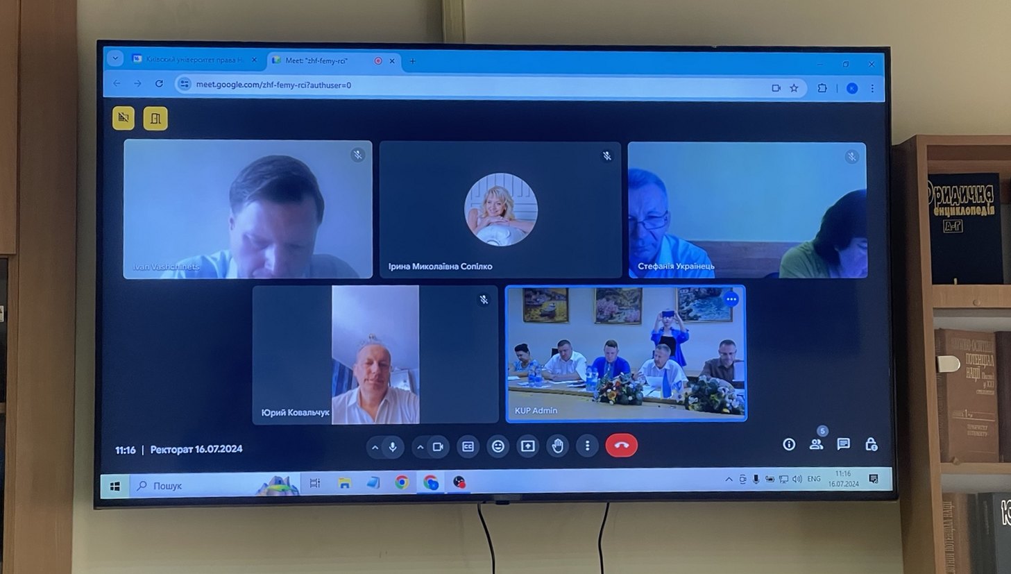 У вівторок 16 липня 2024 року відбулося чергове засідання ректорату Київського університету права НАН України. До порядку денного засідання ввійшли найбільш значущі та актуальні питання, що стосуються як поточної, так і перспективної діяльності КУП НАН України, розгляд яких належить до компетенції ректорату.