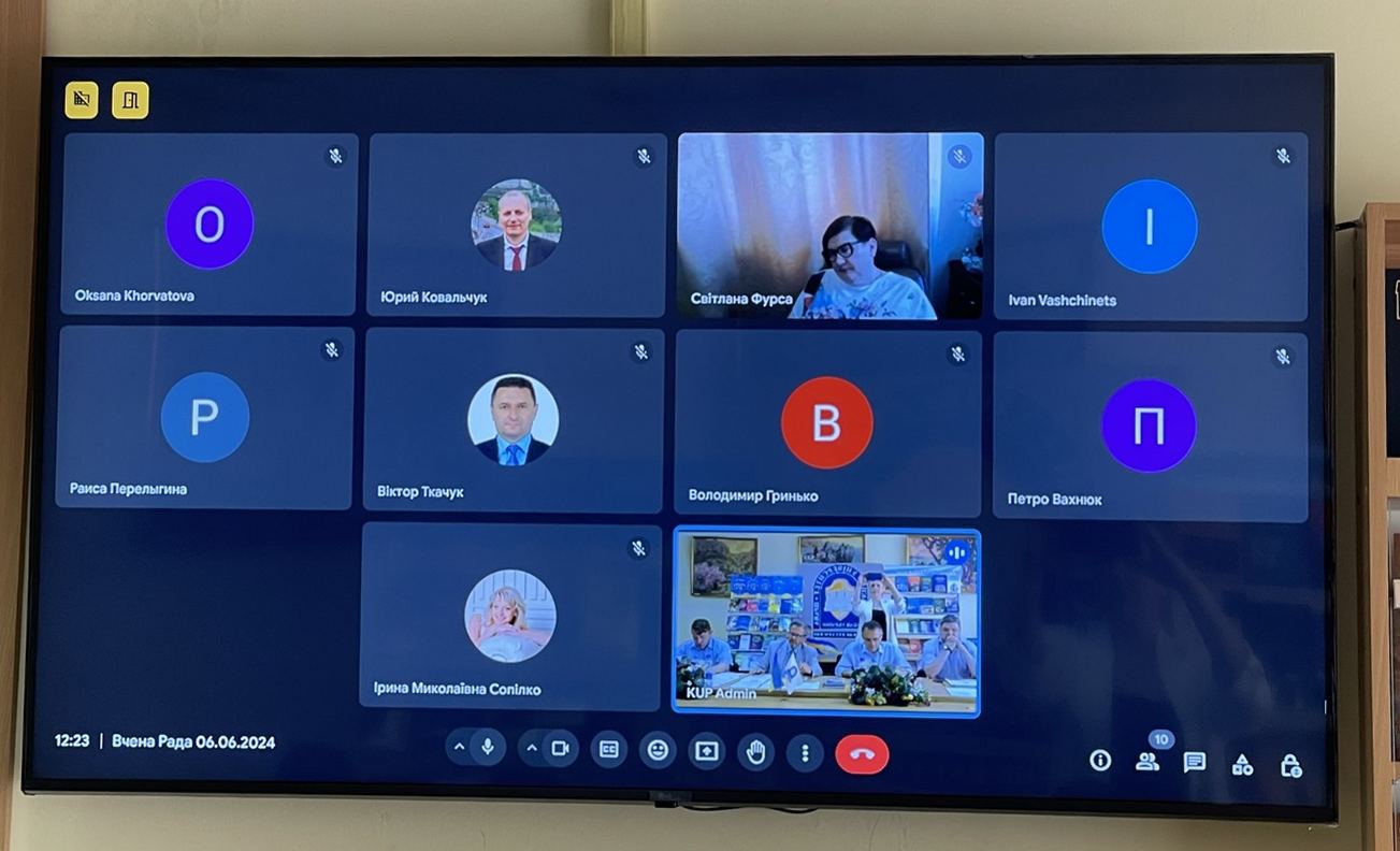 Проректорка з навчально-методичної роботи Олена Антонова ініціювала розгляд питання про встановлення розмірів оплати за навчання в КУП НАН України для здобувачів вищої освіти 2024-2025 року набору, що було схвалено голосуванням.
