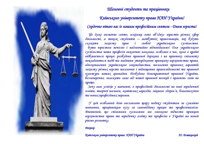 Привітання до Дня Юриста від ректора КУП НАНУ