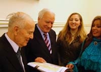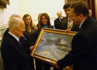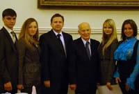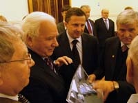 Привітання ректором університету Ю.Л. Бошицьким та студентами КУП НАН України Президента Національної академії наук України Б.Є.Патона з Днем народження
