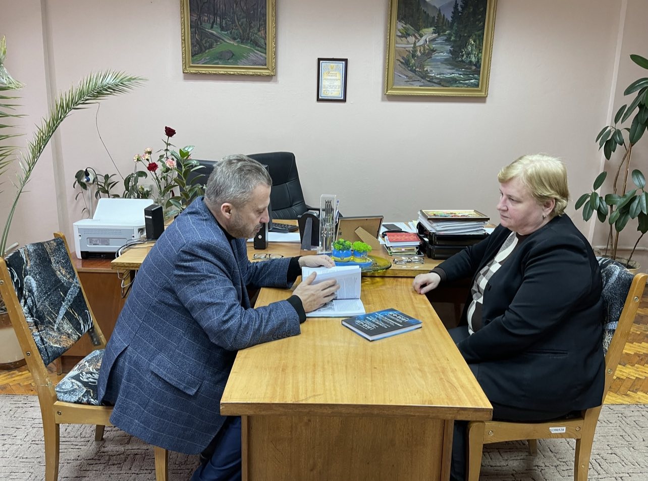 Зі свого боку пані директорка розповіла про основні напрямки міжнародної співпраці Інституту, нові виклики в час війни та передала для бібліотеки КУП НАН України збірник матеріалів Міжнародної ювілейної наукової конференції з нагоди 30-річчя Інституту. До речі, до святкування цієї події , в рамках партнерства, долучився і наш університет в особі керівника структурного підрозділу КУП НАНУ в м. Ужгород − Міжнародного центру правових та економіко-соціальних досліджень країн Центрально-Східної Європи Мирослава Бухало.