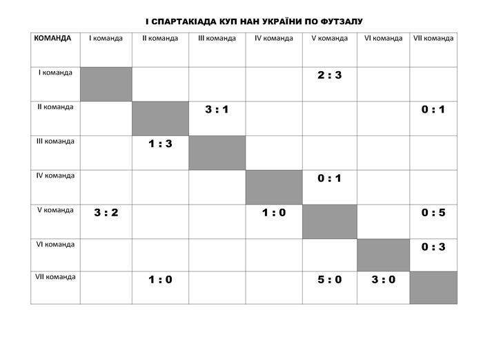 Переможцем І спартакіади по футзалу стала VІІ команда, яка складалася із гравців IV курса