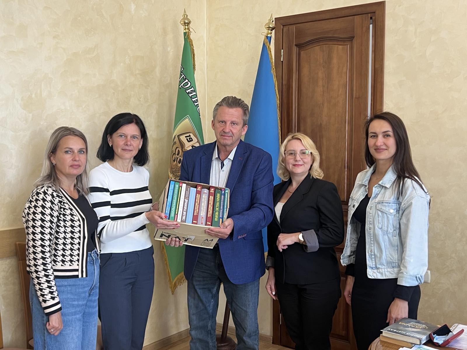 На завершення зустрічі ректор КУП НАНУ Юрій Бошицький традиційно передав для бібліотеки Коледжу правничу літературу в рамках проекту «Популяризація юридичної освіти та професії в колах учнівської молоді України», який проводиться за партнерства видавництва «ЮРІНКОМІНТЕР».