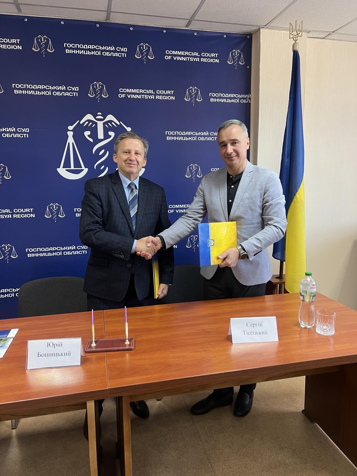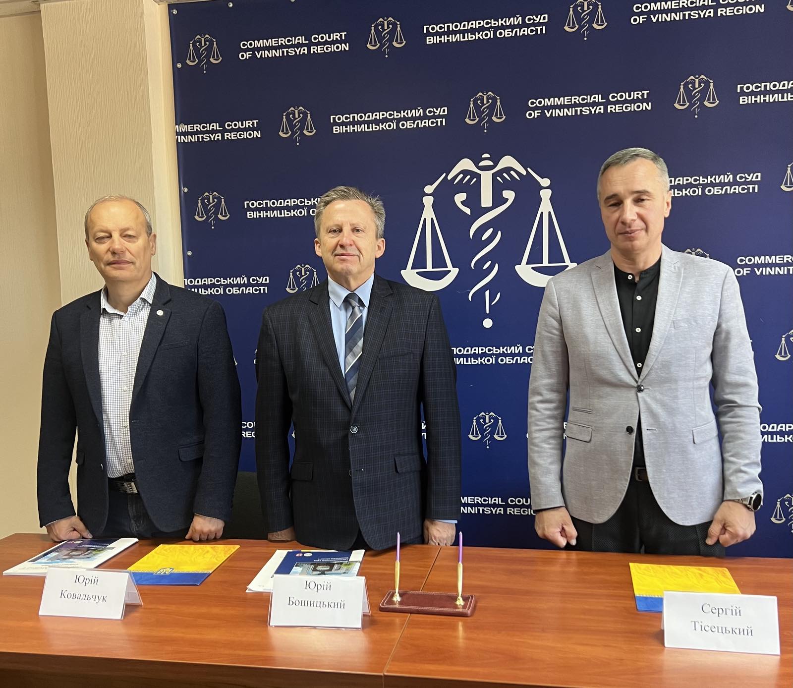 Перебуваючи з робочим візитом на Вінниччині, 25.09.2025 року, ректор Київського університету права НАН України Юрій Бошицький та керівник Вінницького науково-консультативного центру Юрій Ковальчук, провели зустріч з Головою Господарського суду Вінницької області паном Сергієм Тісецьким. Метою зустрічі була реалізація програми партнерства та співробітництва Київського університету права НАН України з органами державної влади та місцевого самоврядування в рамках реалізації політики у сфері правозастосувальної та освітньої діяльності. Між сторонами було підписано Меморандум про довгострокову співпрацю, де були закріплені взаємовигідні та тривалі партнерські відносини.