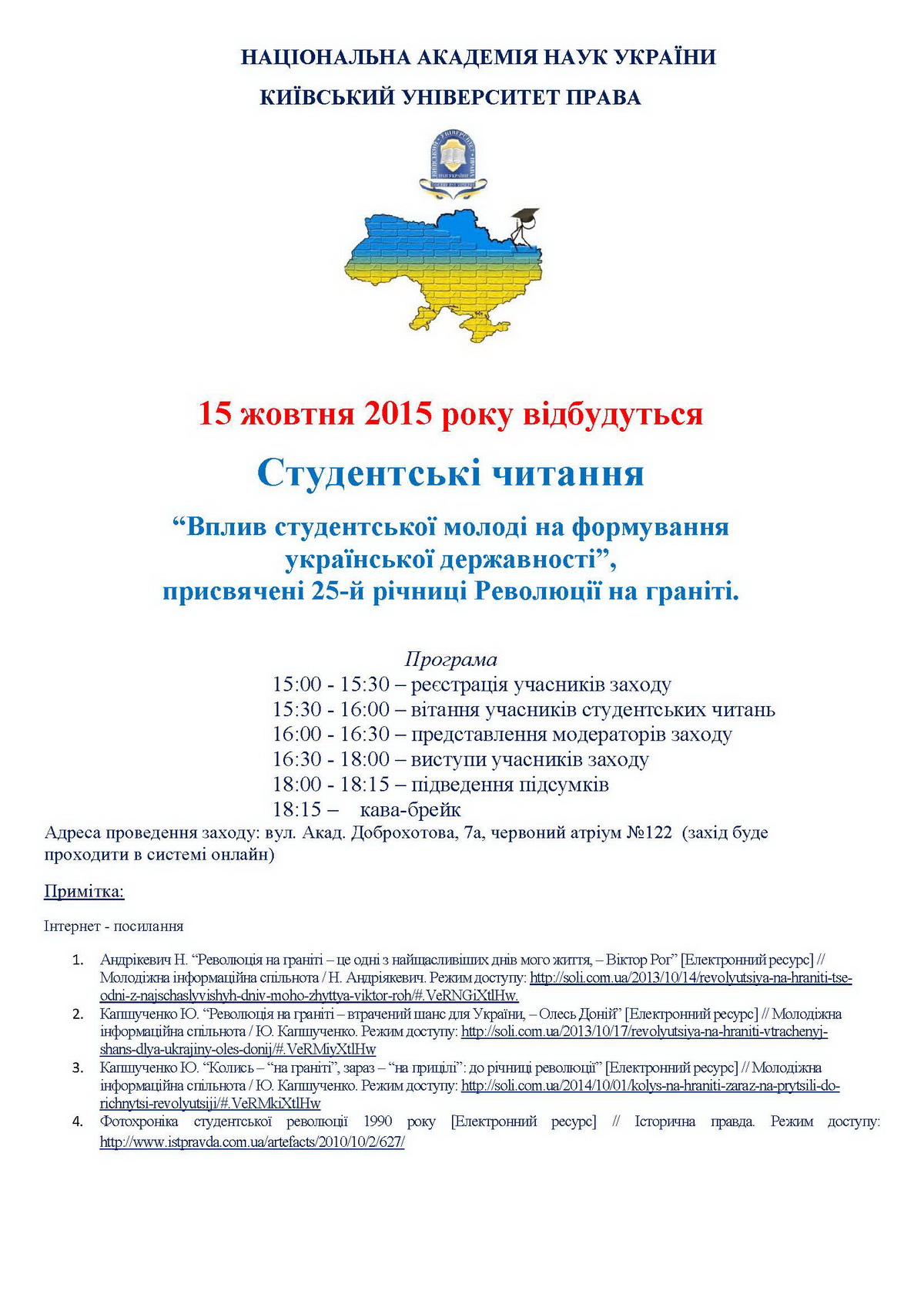 Студентські читання на тему “Вплив студентської молоді на формування української державності”, присвячені 25-й річниці Революції на граніті.