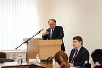 Наступного дня зі вступним словом до присутніх звернувся Голова Конституційного Суду України, доктор юридичних наук, професор, академік Національної академії правових наук України Ю.В. Баулін. Він подякував організаторам заходу та наголосив на важливості проведення Всеукраїнського модельного засідання Конституційного Суду України. Голова КСУ детально зупинився на основних процесуальних моментах, яких необхідно дотримуватися на пленарному засіданні Конституційного Суду, та побажав успіху усім учасникам, після чого розпочалося безпосередньо саме модельне засідання.