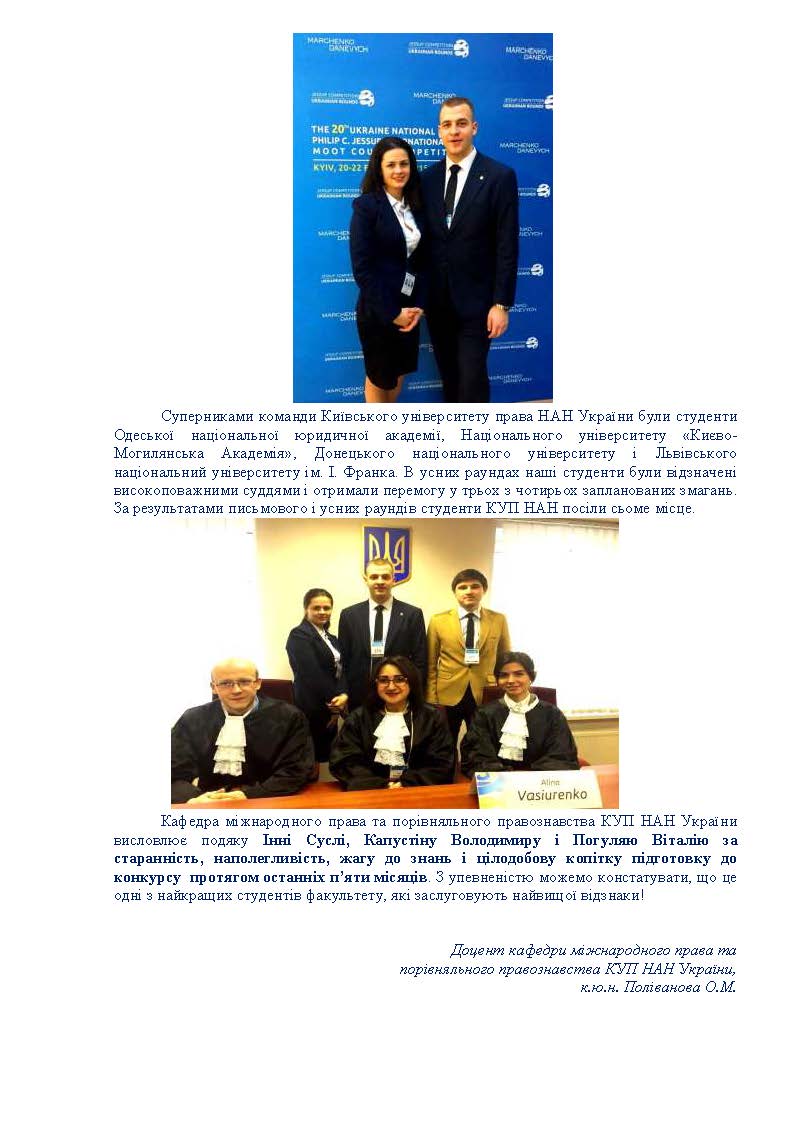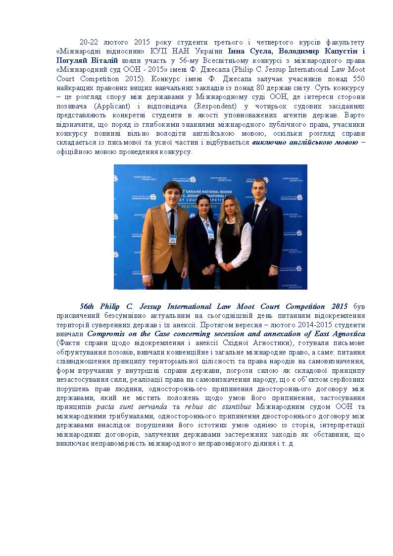 Студенти КУП НАН України взяли участь у Philip C. Jessup International Law Moot Court Competition 2015