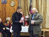У рамках загальноуніверситетського проекту «Передай тепло своїх родин людям поважного віку», що діє в університеті під патронатом ректора, професора Юрія Бошицького, студенти КУП НАНУ привітали ветеранів 8-го мікрорайону Святошинського району м. Києва з наступаючими новорічними святами. Під час зустрічі уже традиційно новобраний президент студентського парламенту Опря Дар`я та голова Ради ветеранів Сергій Полухін пролонгували меморандум про співпрацю.