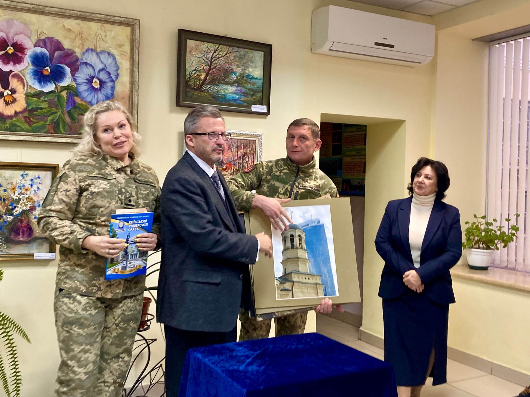 Завершенням святкування Міжнародного дня студента стало урочисте відкриття виставки картин рівненських художників Костянтина та Аліни Степанюків під назвою «Динаміка та образ». Окрім студентів університету та педагогічного складу на захід були запрошені представники Головного клінічного військового госпіталю пані Наталя та пан Сергій. Ректор КУП НАНУ Юрій Бошицький передав від імені всіх викладачів і вихованців університету фотороботи для оздоблення госпіталю, а також висловив обіцянку надання посильної допомоги від вишу військовим. Окрім цього ректор анонсував проведення благодійного аукціону картин із метою збору коштів на потреби ЗСУ.
