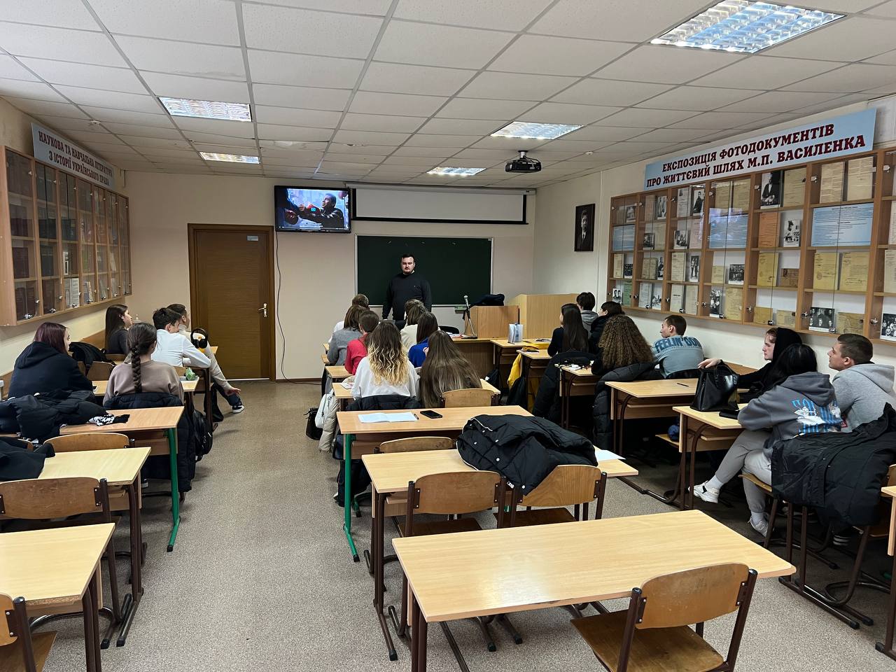 Бінарне заняття було проведено 17 листопада 2023 року для студентів 1 курсу. Організаторами та модераторами виступили к.ю.н., доцент Наталія Веселовська та старший викладач Володимир Павлов.