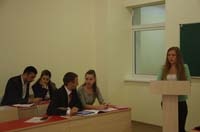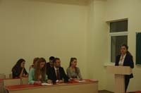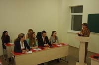 Із вступним словом виступила Тітко Ельвіра Валентинівна, яка наголосила на актуальності даної тематики, звернувши особливу увагу на особливості тлумачення понять «народ» та «нації» в теорії міжнародного права.