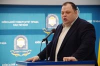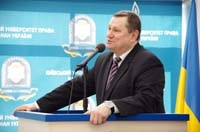Діалогову частину конференції з доповіддю «Академічна лекція з курсу «Цивільне право» для студентів юридичних ВНЗ України» розпочав завідувач кафедри цивільного і трудового права КУП НАНУ професор Володимир Васильович Луць, який поділився досвідом викладання.
