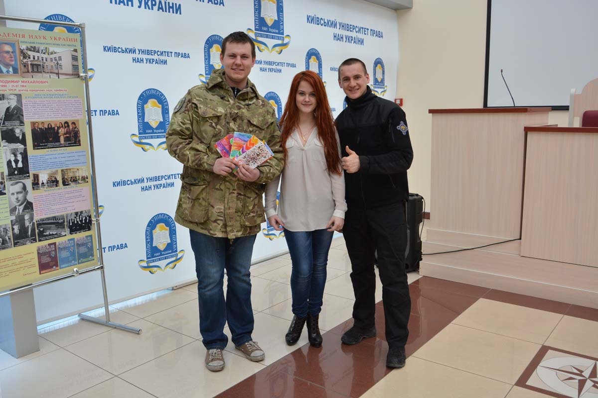 Молоді люди, які прийшли до нашого вишу, розповіли про свій нелегкий шлях та вибір; про свою реальність як захисників Вітчизни. В своєму виступі бійці АТО перед студентами юридичного факультету попросили їх не полишати своїх побратимів на самоті із проблемами, брати посильну участь у наданні волонтерської допомоги та наполегливо здобувати знання за фахом, бо юристи потрібні країні як ніколи. Під час зустрічі студенти піднімали питання їхнього відношення до подій у Києві, до їхньої складної і надзвичайно відповідальної та небезпечної на сьогодні роботи.