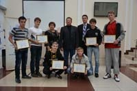 Юрій Бошицький, ректор КУП НАНУ, почесний «Посол Миру» та Михайло Ільїн, Голова правління Федерації всесвітнього миру вручили учасникам товаристського матчу сертифікати Федерації всесвітнього миру “Youth Ambassador for Peace” – молодіжний посол миру.