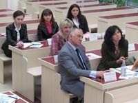 М. Т. Лоджук розповів про сучасні наукові розробки у сфері юридичної клінічної освіти, перспективи удосконалення національного законодавства, яке визначає питання надання первинної правової допомоги, а також проблеми відповідальності студента-консультанта перед клієнтом.