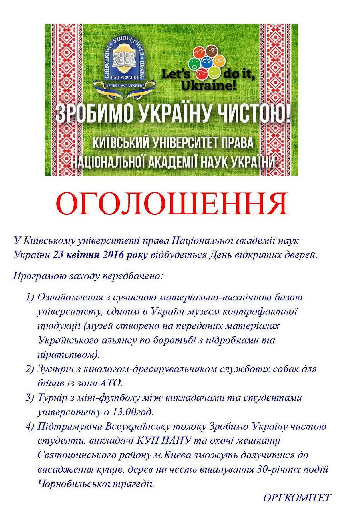 У Київському університеті права Національної академії наук України 23 квітня 2016 року відбудеться День відкритих дверей