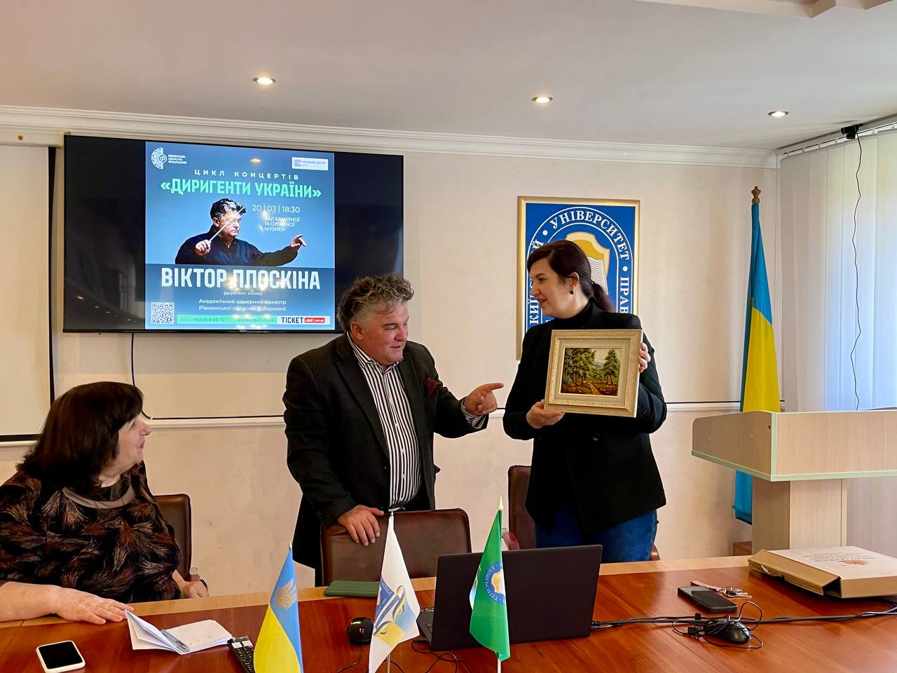 Відкриваючи захід, директор інституту Стефанія Українець підкреслила неординарність цієї події не лише для інституту, а й цілого міста. Адже Віктор Плоскіна у музичному мистецтві є фігурою світового значення. Гастролі у Німеччині (Моншау; у програмі «Трубадур», «Лебедине озеро», концерт симфонічної музики), Іспанії (Ла Пальма; у програмі «Реквієм» В.А. Моцарта, концерт симфонічної музики) Нідерландах та Бельгії (Роттердам, Ейндховен, Бреда, Гаага, Гент; у програмі «Трубадур»), Грузії (Національна опера імені З. Паліашвілі), Узбекистані (Державний академічний Великий театр імені А. Навої). постановки в Італії: опера «Дон Паскуале» Г. Доніцетті в театрі м. Ровіго, балет «Жізель» А. Адана в театрі м. Барі, Міжнародний музичний фестиваль у м. Патос (Кіпр) – це далеко не повна географія виступів відомого маестро.
