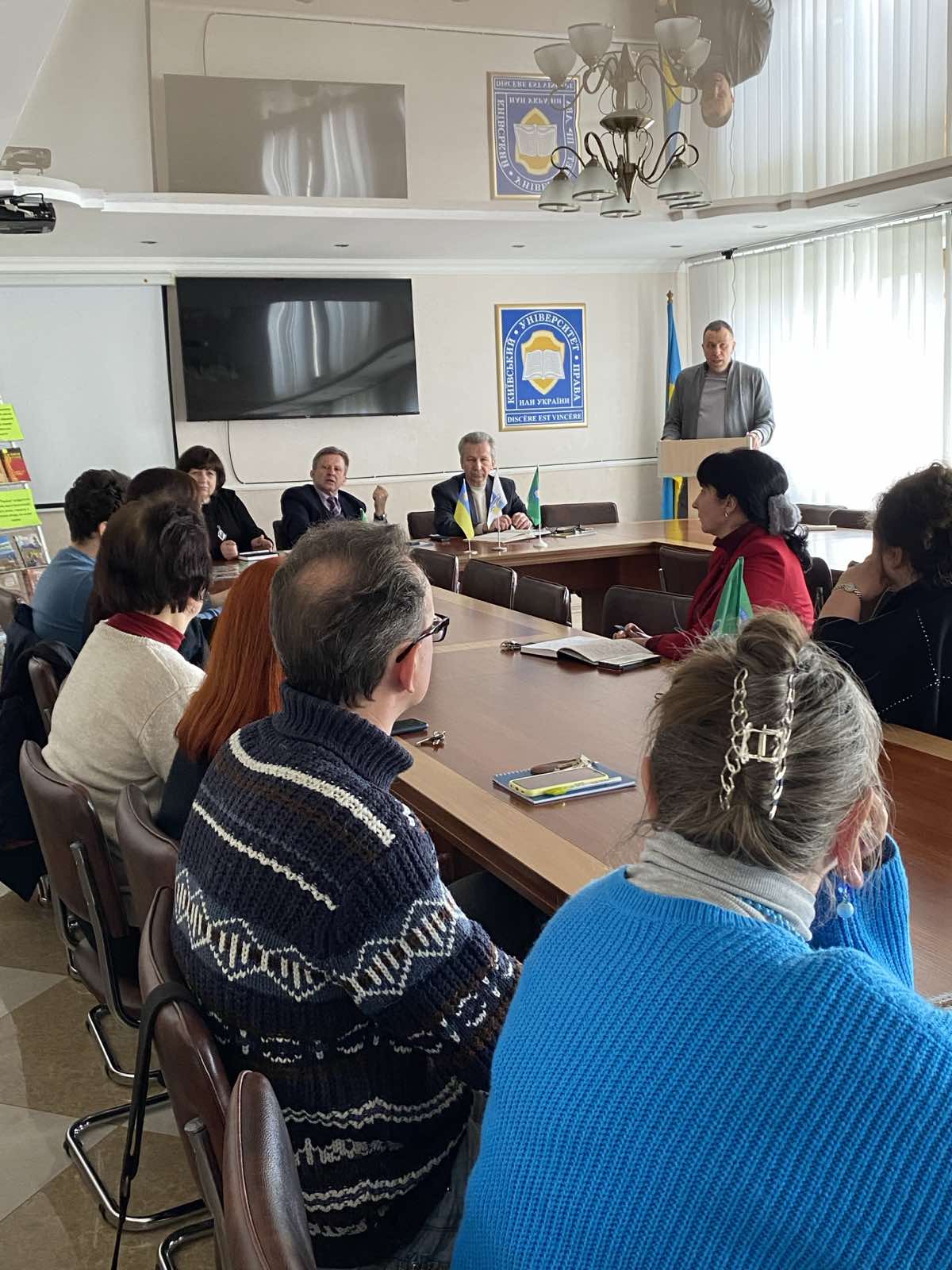 Відкриваючи нараду, Юрій Бошицький акцентував увагу на тому, що попри усі виклики і проблеми, які постали нині в освітній сфері у зв’язку з воєнними діями, зобов’язують консолідувати зусилля педагогів і працювати у режимі посиленої відповідальності. Ректор детально проаналізував стан наукової роботи в інституті, зокрема ішлося про завершення роботи над малою енциклопедією міграційного права, підготовкою статей до колективної монографії університету, видання якої приурочене 30-річчю діяльності вишу.