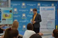 За програмою школи виступ мав наймолодший кандидат у народні депутати України, студент-активіст НМУ імені О.О. Богомольця – Василь Гілюк. Спікер розповів про свою громадську активність, яка успішно поєдналась з політичною. Розуміючи більшість проблем студентства, Василь Гілюк акцентував увагу на тому, що активні та готові до роботи студенти – завжди віднайдуть свою нішу. Відповів на запитання учасників, а також запросив бажаючих до співпраці.