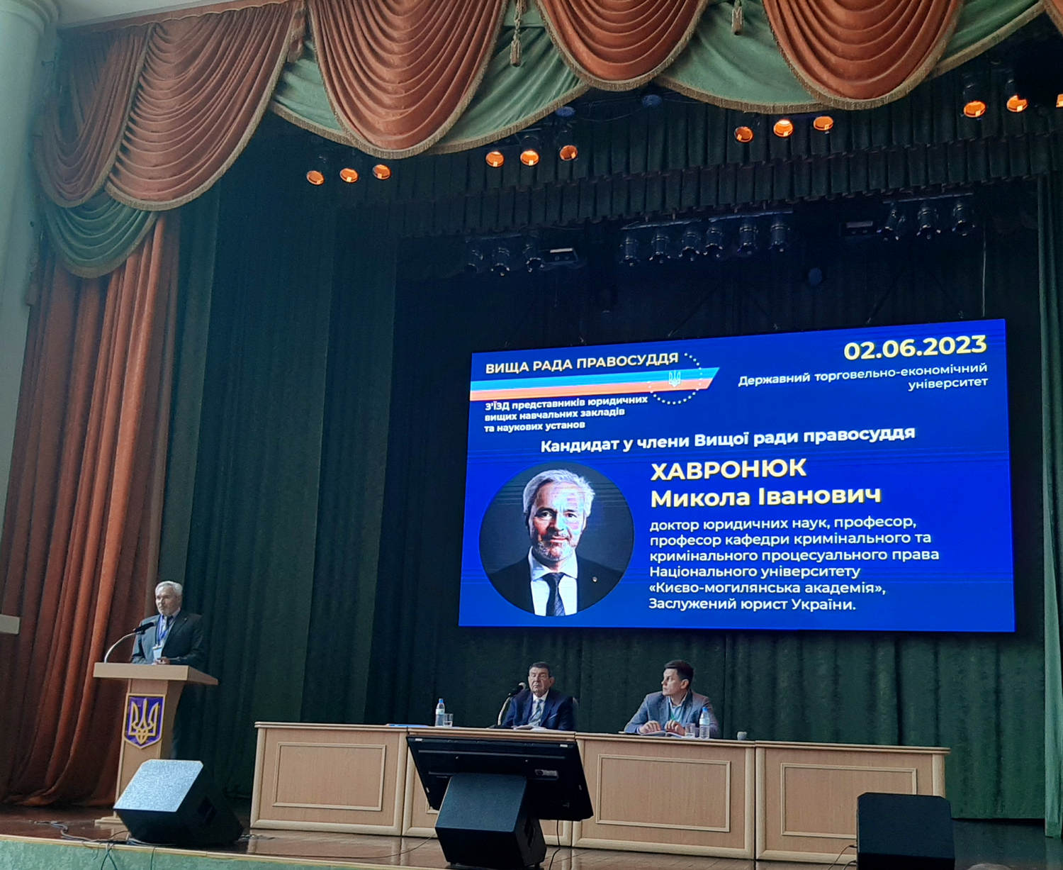 Перед делегатами виступив Микола Хавронюк. Він також розповів про свій життєвий та професійний досвід. Зокрема, кандидат, разом з іншими експертами, підготував проєкт нового Кримінального кодексу. Микола Хавронюк також розкритикував стан речей в державі. «Я знаю проблеми суддів. Я вболіваю за суддів. Я хочу, щоб судді були по-справжньому незалежні»,- зазначив Микола Хавронюк.
