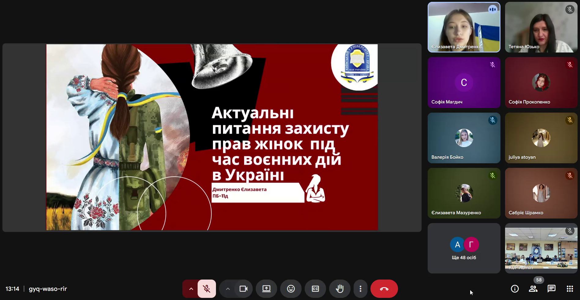 Студентську аудиторію від КУП НАНУ представляли – Максим Бугера, Єлизавета Дмитренко, Альона Андрущенко, Юрій Кундицький, Максим Шеремет, які виступили з доповідями по актуальних питаннях захисту прав людини в умовах агресії рф проти України.