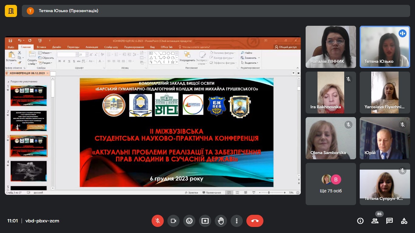 06 грудня 2023 року відбулась 2-га міжвузівська студентська науково-практична конференція « Актуальні проблеми реалізації та забезпечення прав людини в сучасній державі», в якій Київський університет права НАН України виступив в якості співорганізатора. У конференції взяли участь студенти Київського університету права НАН України, Рівненського інституту КУП НАНУ, Вінницького науково-консультативного центру КУП НАНУ, Вінницького торгівельно-економічного університету КТЕУ, Бердичівського фахового коледжу промисловості, економіки і права, ВСП «Камянець-Подільського фахового коледжу» закладу вищої освіти «Подільський державний університет» та Барського гуманітарно-педагогічного коледжу ім. М. Грущевського.