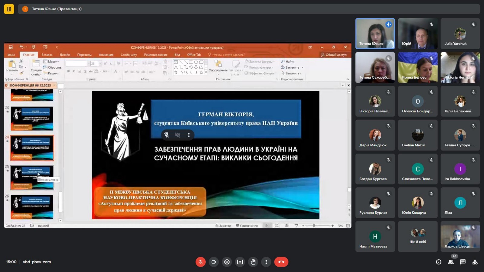 У студентських наукових доповідях піднімались актуальні питання захисту прав людини в сучасний державі та в умовах агресії РФ проти України.