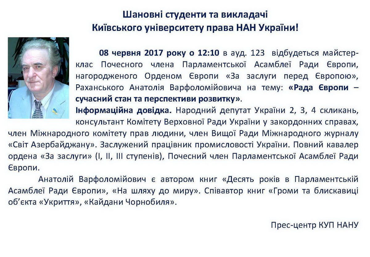Увага! 08 червня 2017 року відбудеться майстер-клас Раханського Анатолія Варфоломійовича