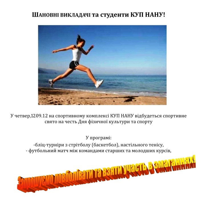 Увага! 12.09.2012 на спортивному комплексі КУП НАНУ відбудеться спортивне свято на честь Дня фізичної культури та спорту