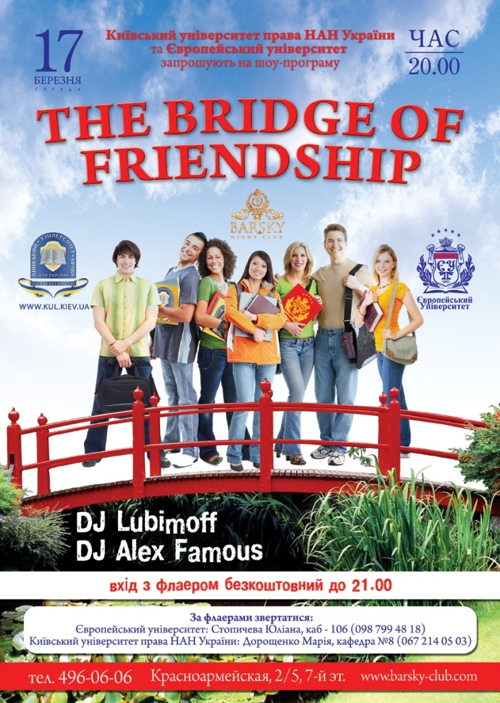 Увага! 17.03.2010 р. відбудеться спільний культурно-розважальний захід КУП НАНУ та Європейського університету «The Bridge of Friendship»