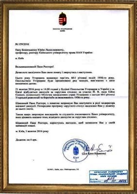 21 жовтня 2016 року о 14:00 у будівлі Посольства Угорщини в Україні у м. Києві
