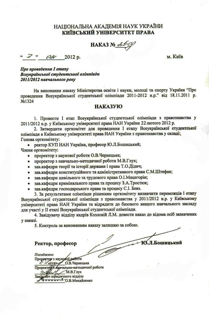 Увага! 22 лютого 2012 р. ( у середу ) о 12.10 год. в ауд. №123 відбудеться І етап Всеукраїнської студентської олімпіади за спеціальністю «Правознавство» у 2011/2012 н. р. Запрошуємо до участі студентів IV-V курсів!