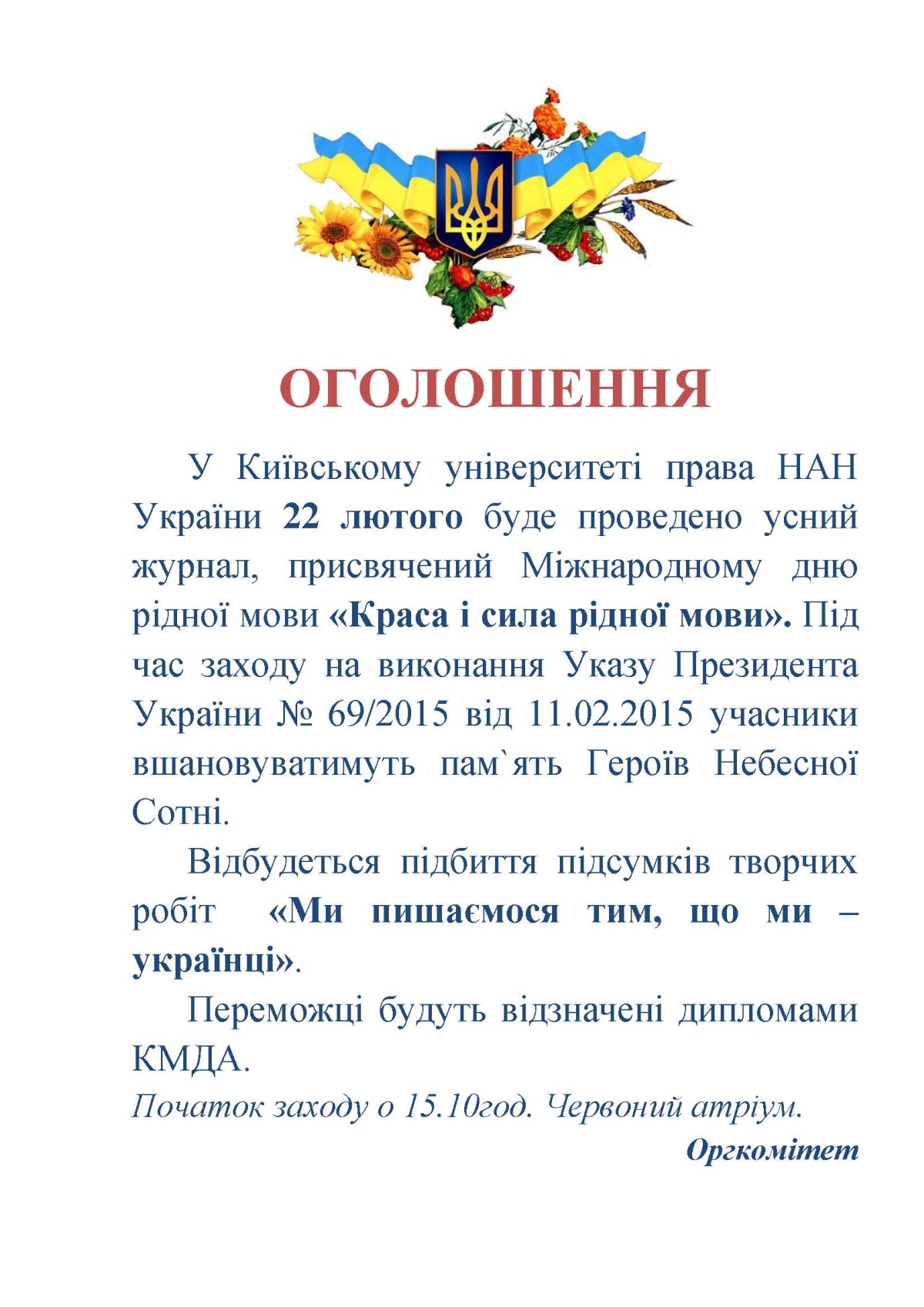 Увага! 22 лютого буде проведено усний журнал, присвячений Міжнародному дню рідної мови «Краса і сила рідної мови»