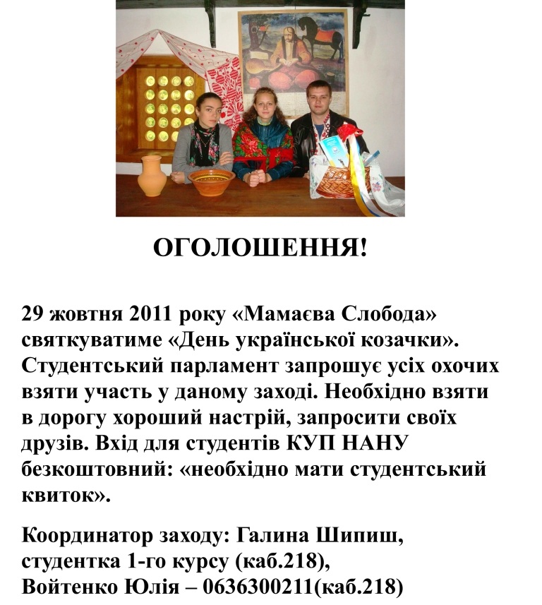Увага!29 жовтня 2011 року «Мамаєва Слобода» святкуватиме «День української козачки»!