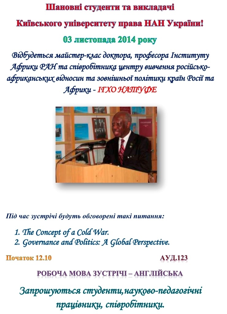Увага! 3 листопада відбудеться майстер-клас доктора, професора Інституту Африки РАН Ігхо Натуфе