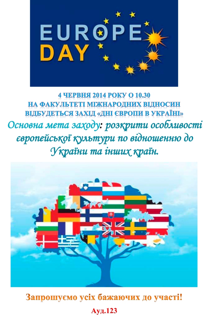 Увага! 4 червня 2014 року на факультеті міжнародних відносин відбудеться захід «Дні Європи в Україні»