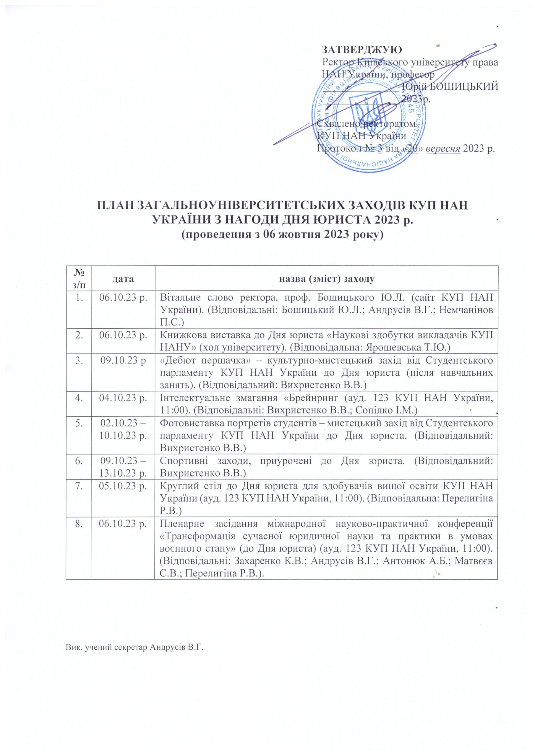 УВАГА! План загальноуніверситетських заходів КУП НАН України до Дня юриста 2023 р.