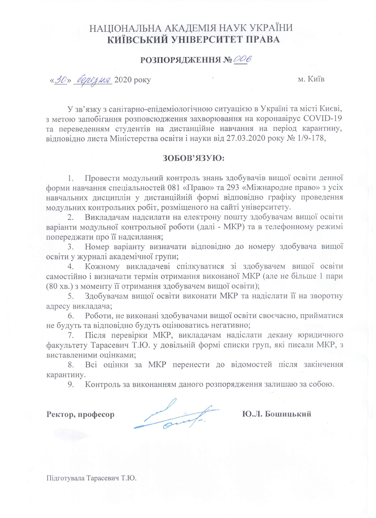 Увага!!! Розпорядження ректора щодо проведення модульних контрольних робіт