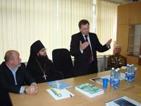 Архімандрит Климент, проректор по навчальній частині КДАіС від імені Високопреосвященнішого Антонія, архієпископа Бориспільського, вікарія Київської Митрополії, Ректора Київської Духовної Академії та Семінарії привітав усіх учасників круглого столу.