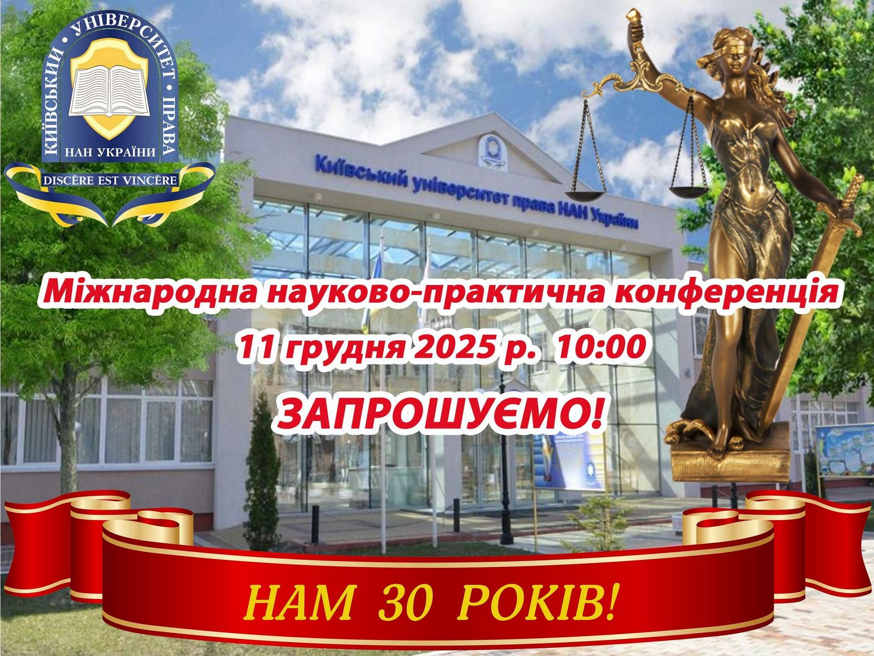 УВАГА! Відбудеться Міжнародна науково-практична конференція присвячена 30-річчю Київського університету права НАН України