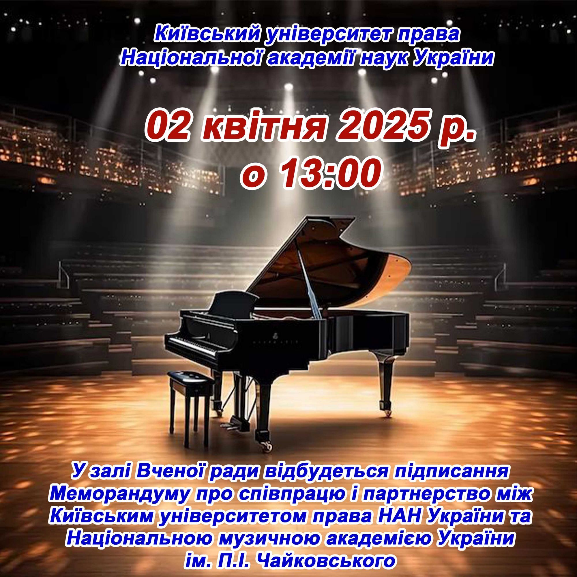 Увага! Відбудеться підписання Меморандуму про співпрацю і партнерство між КУП НАН України та Національною музичною академією України ім. П.І. Чайковського